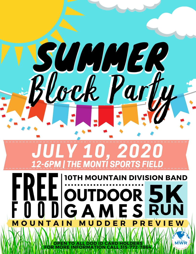 To celebrate the beginning of the summer with a bang, featuring Family and MWR programs and the 10th Mountain Band. Take part in family-friendly activities with a 5K, bike parade, dunking booth and interactive challenges.