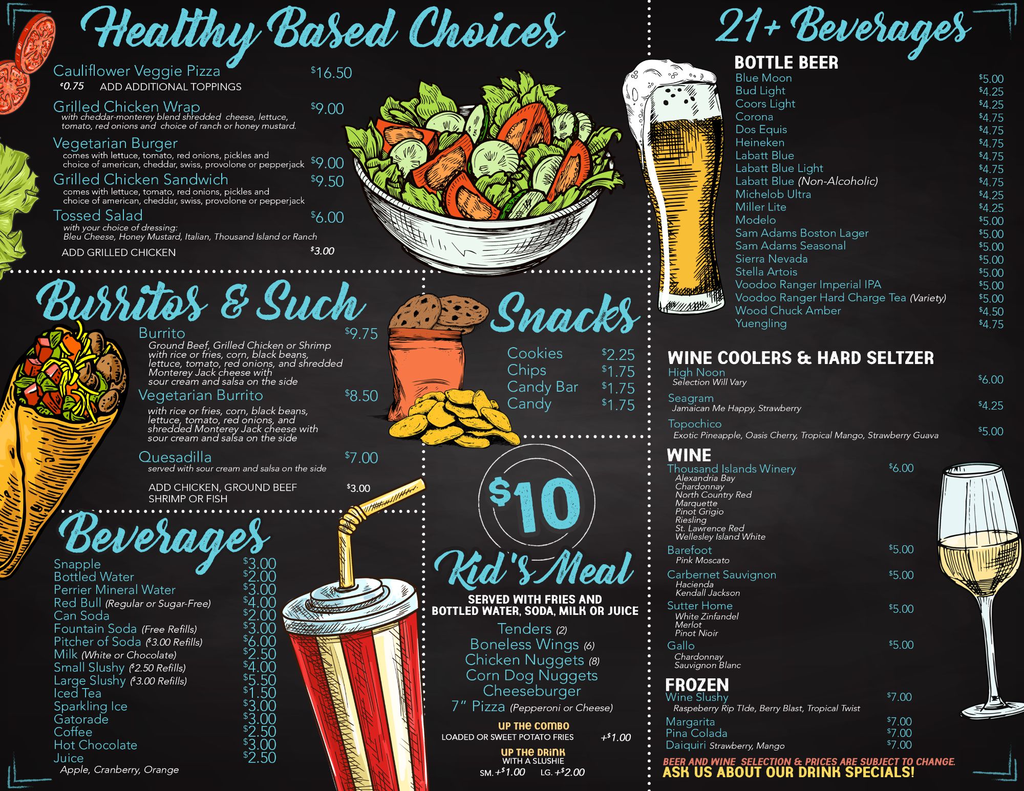 *Ask to see the bar menu at the snack counter*
