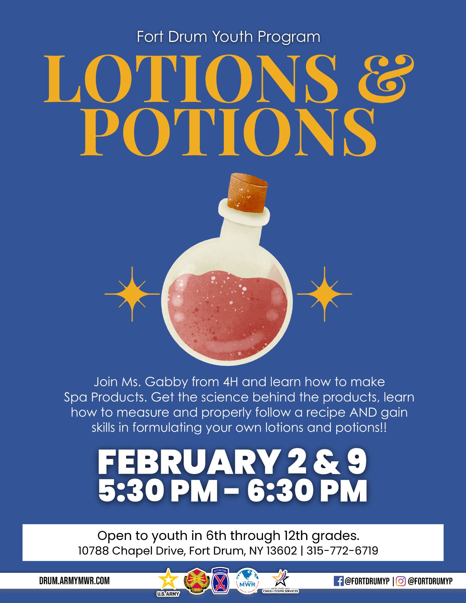 For more information on Sports, Fitness & Aquatics events and programs, call 315-772-6663.